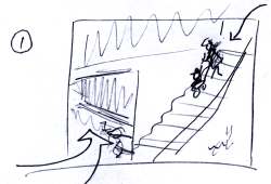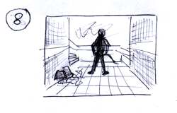 OR FARNACA ENDING: add another shot 8 LS (but closer in than shot 7) REVERSE shot wide looking down subway sound of buggy wheels disappearing OS David Farnaca stands in the subway entrance, in part silhouette, looking to camera: he smiles benevolently, turns and walks away screen left with his tail clearly visible... FADE TO BLACK |